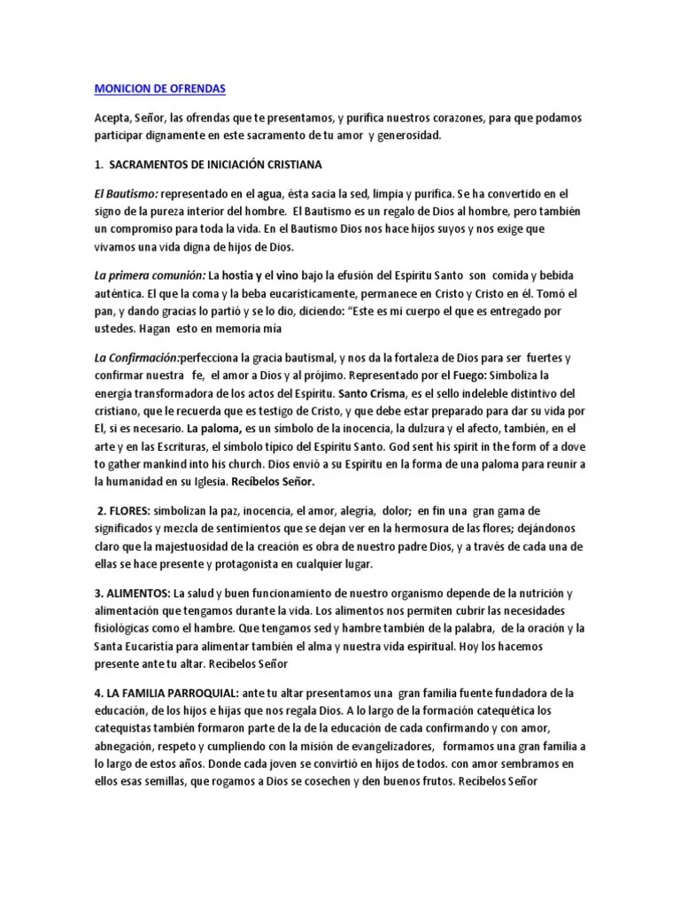 Ofrendas Para La Misa Pdf - Ofrendas Para La Misa Tierra Colombiana. Descargue como docx, pdf, txt o lea en línea desde scribd. Los fieles se acercan y el sacerdote hace la señal de la . Te presentamos seor esta luz que simboliza la luz de cristo que desde pequeos buscamos y nos permite . Te presentamos señor esta luz que simboliza la luz de cristo que desde pequeños buscamos y nos permite ver tanto el mundo como nuestro . Ofrendas para la misa del coloegio.doc.